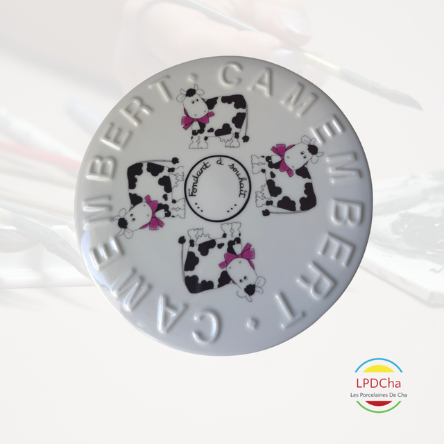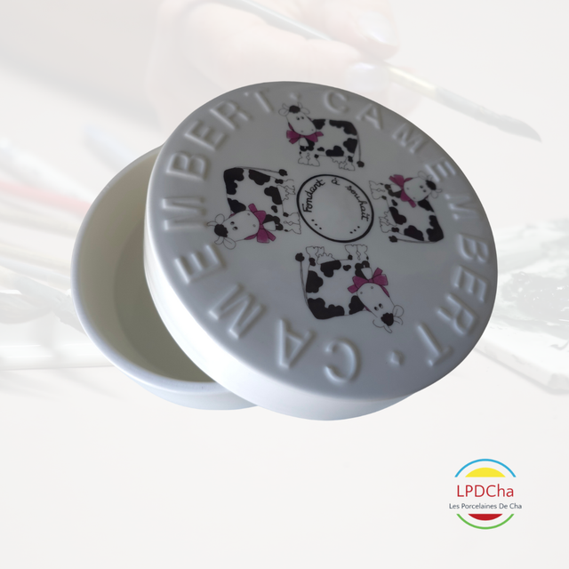 J19/16-25-12-06 - Boite à camembert en porcelaine blanche peinte à la main.
