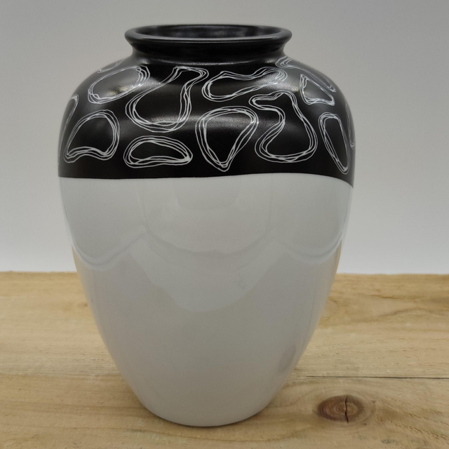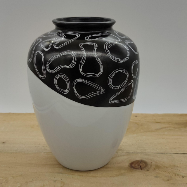 Vase peint à la main - motif réalisé par grattage.