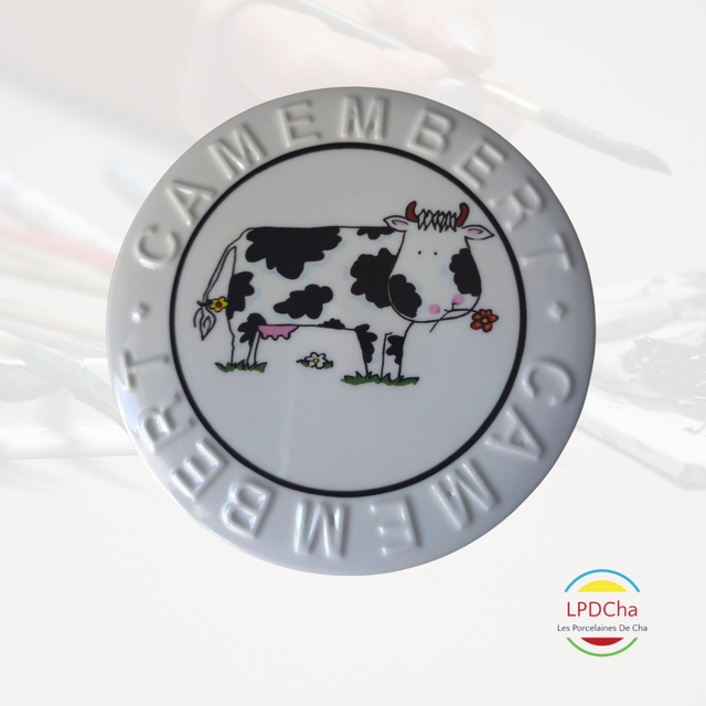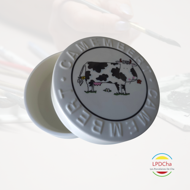 J19/16-25-12-06 - Boite à camembert en porcelaine blanche peinte à la main.