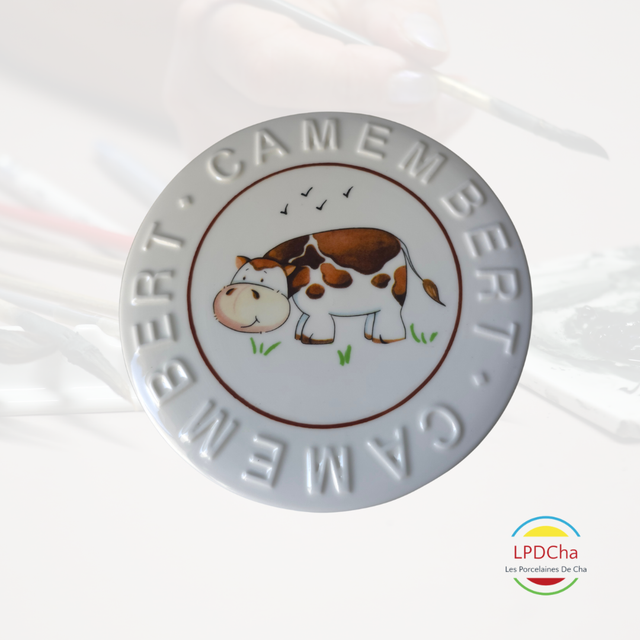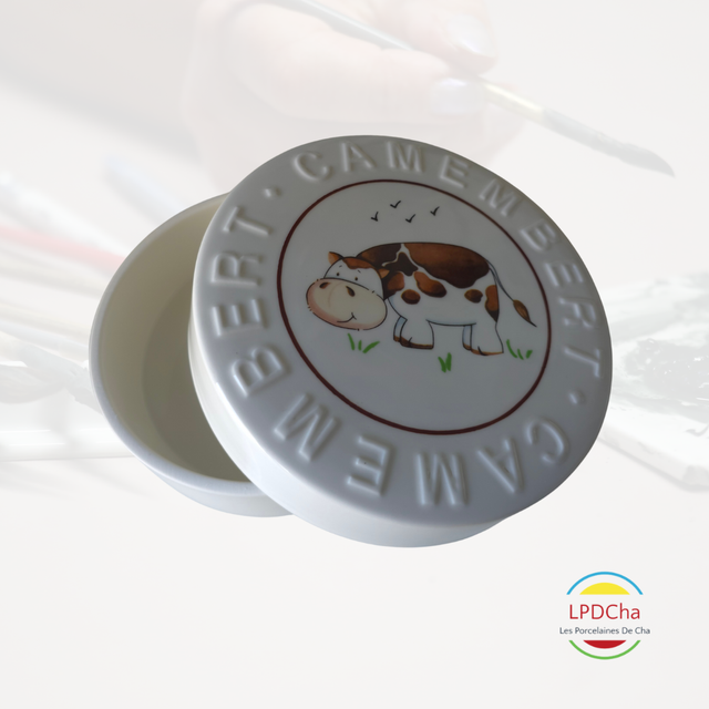 J19/16-25-12-02 - Boite à camembert en porcelaine blanche peinte à la main.