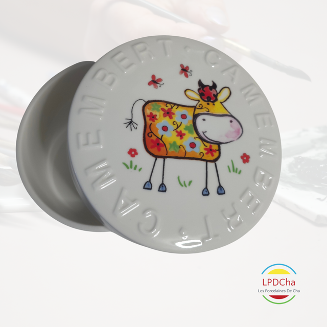 J19/16-25-11-18 - Boite à camembert en porcelaine blanche peinte à la main.