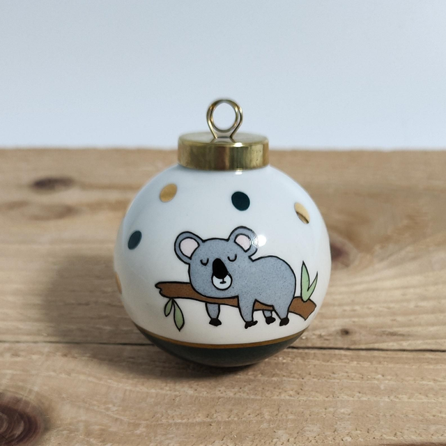 Boule de Noël personnalisée par reprise d'un élément du faire-part de naissance.