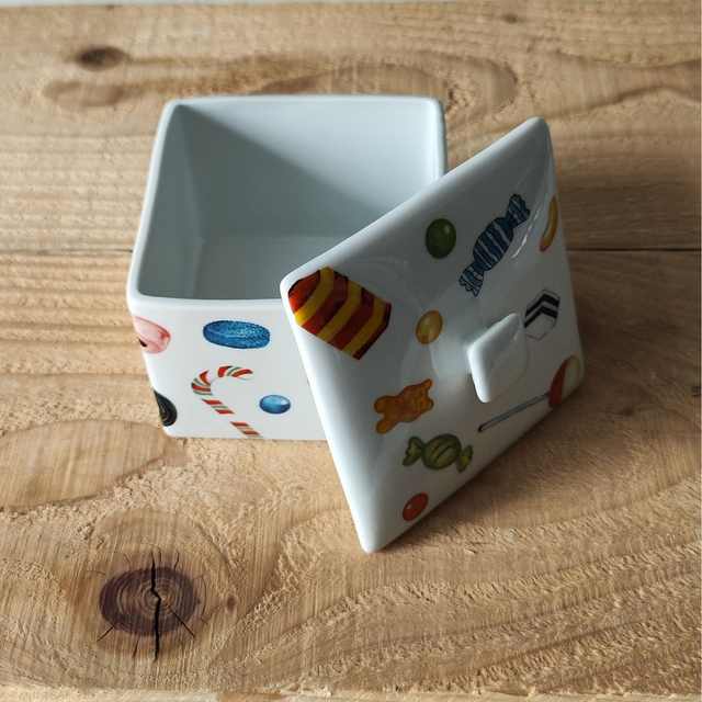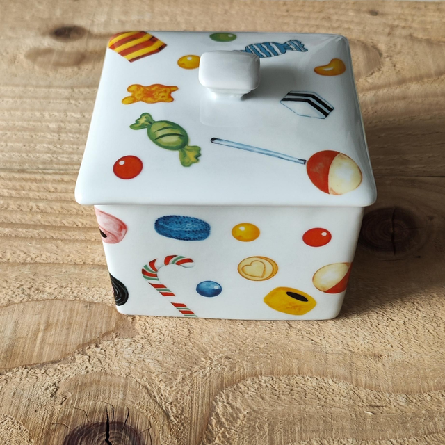Des bonbons ont été posés sur les 4 faces et sur le couvercle de la boite.