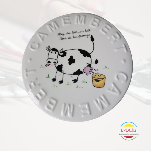 J19/16-25-12-11 - Boite à camembert en porcelaine blanche peinte à la main.