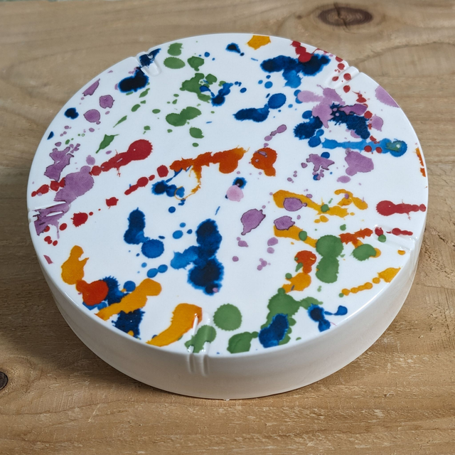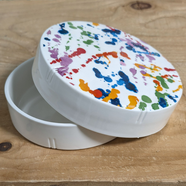 J19/13-24-02-02 - Boite à camembert en porcelaine blanche peinte à la main.