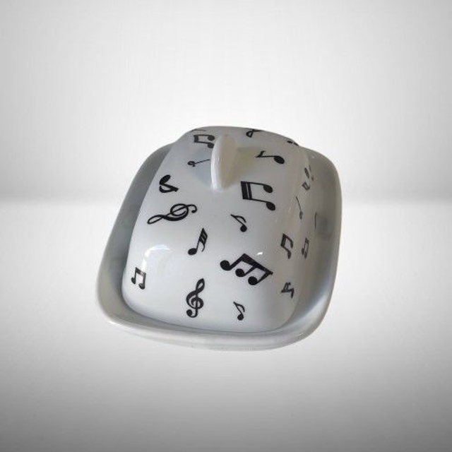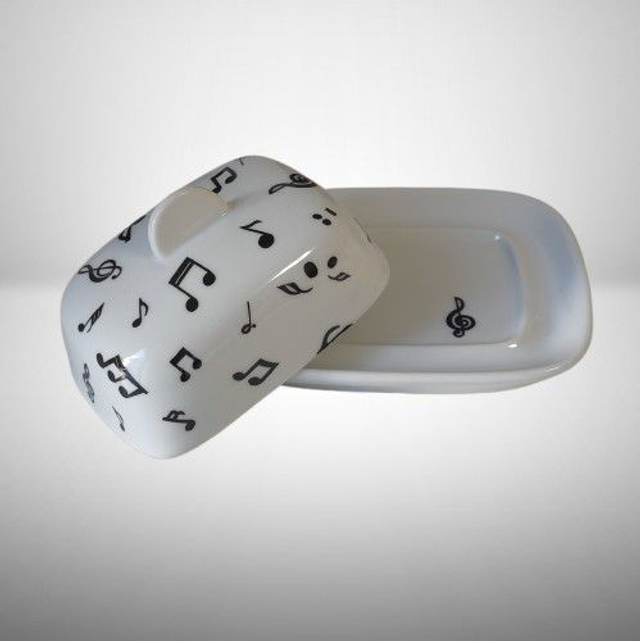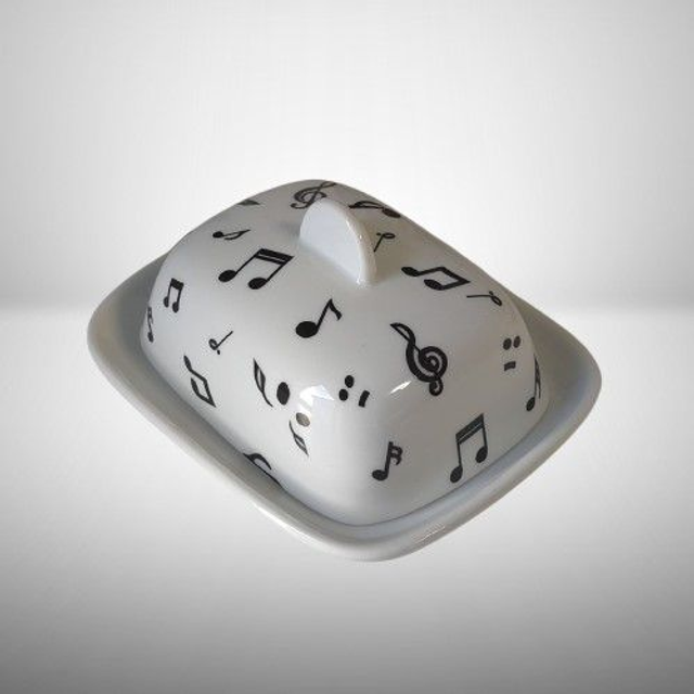 J22-24-11-01 - Beurrier en porcelaine blanche, peint à la main.