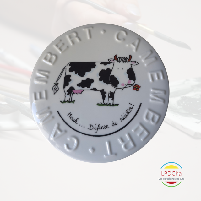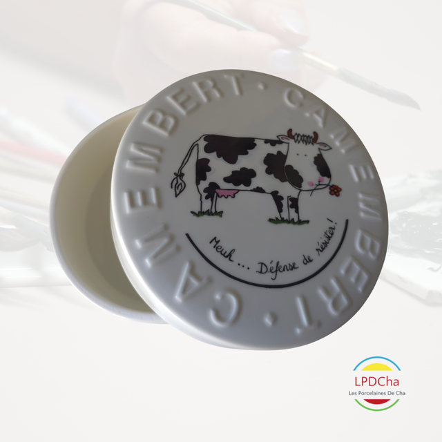 J19/16-25-12-07 - Boite à camembert en porcelaine blanche peinte à la main.