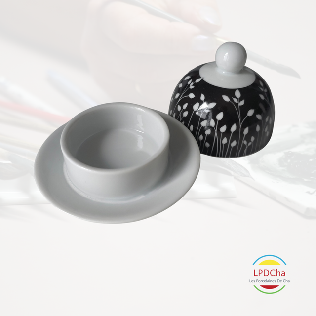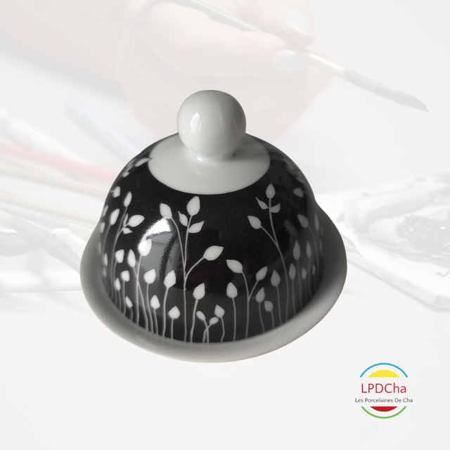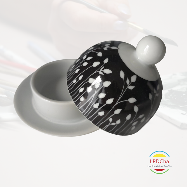 J15-25-09-02 - Beurrier en porcelaine blanche, décoré à la main.