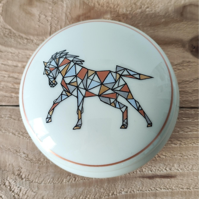 Boite ronde en porcelaine ivoire peinte à la main.