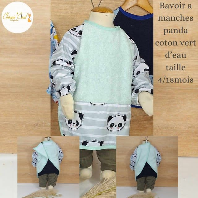 - Matériaux de qualité : Le bavoir est confectionné en tissu 100% coton pour le confort, et doublé de PUL, un tissu imperméable français, spécialement traité pour le contact alimentaire.