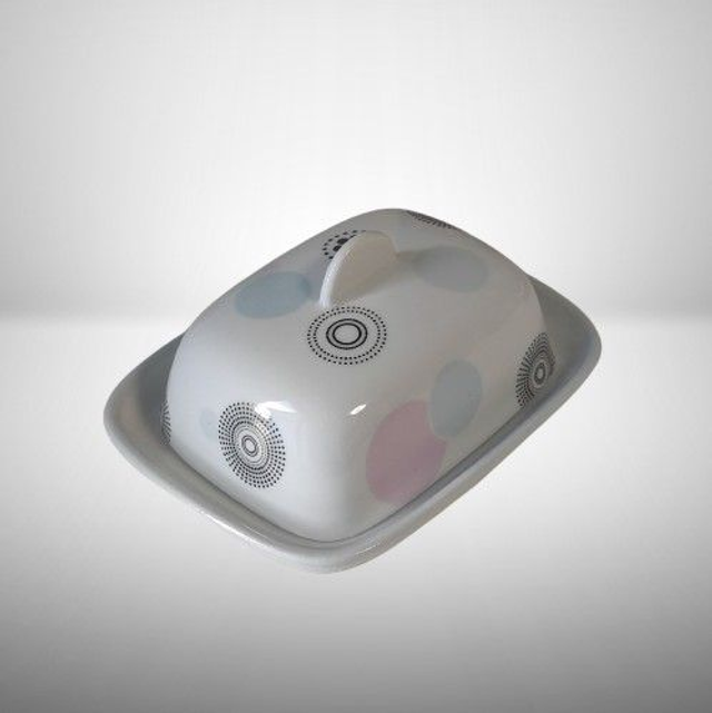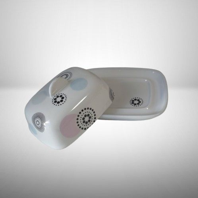 J22-24-11-03 - Beurrier en porcelaine blanche, peint à la main.