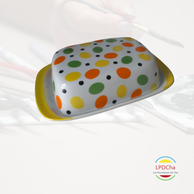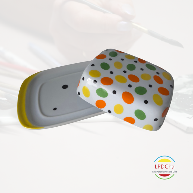 J21-25-10-01 - Beurrier en porcelaine blanche, peint à la main.