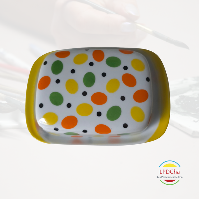 Un beurrier en porcelaine blanche aux motifs ovales vitaminés, épuré et sans bouton pour une ligne douce et contemporaine, pour illuminer la table du quotidien.