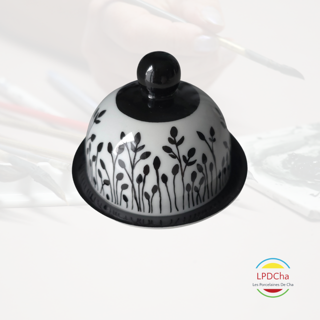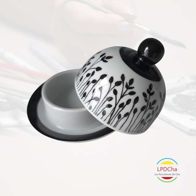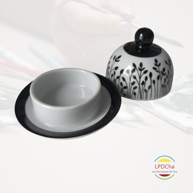 J15-25-09-01 - Beurrier en porcelaine blanche, décoré à la main.