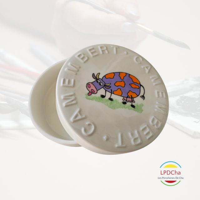 J19/16-25-08-07 - Boite à camembert en porcelaine blanche peinte à la main.