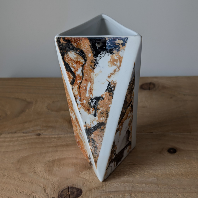 P88/1-27-07-02 - Vase triangulaire en porcelaine.