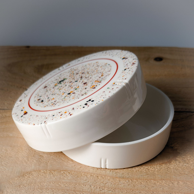 J19/13-24-03-06- Boite à camembert en porcelaine blanche peinte à la main.