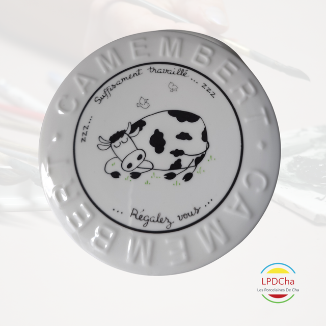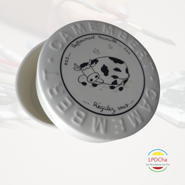 J19/17-25-12-01 - Boite à camembert en porcelaine blanche peinte à la main.