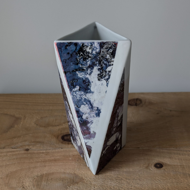 P88/1-27-07-01 - Vase triangulaire en porcelaine.