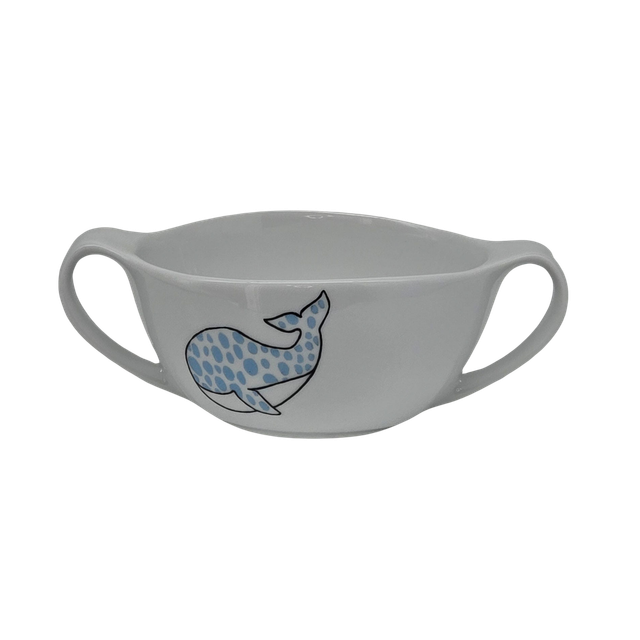 - Bol en porcelaine : Assorti au bavoir, le bol est décoré d'un motif baleine peint à la main. Ce bol accompagnera l’enfant à chaque repas, de ses premiers pas jusqu’à ses grandes découvertes. Compatible micro-ondes et lave-vaisselle
