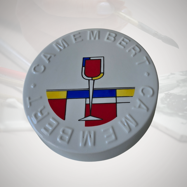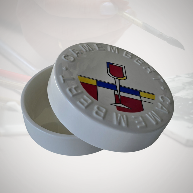 J19/16-25-04-02 - Boite à camembert en porcelaine blanche peinte à la main.