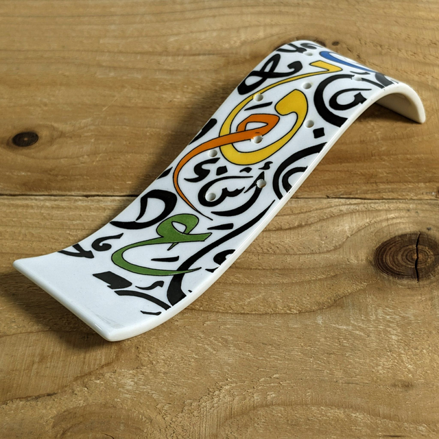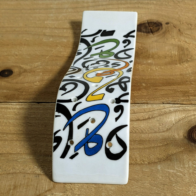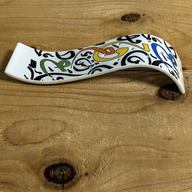 A38/5-24-02-01 - Coupelle vague apéritive en porcelaine. Coupelle peinte à la main, pouvant accueillir jusqu'à 12 brochettes. Compatible lave-vaisselle et micro-ondes. Pièce unique signée décorée à la main. Longueur : 22 cm Hauteur : 4 cm au plus haut de la vague Largeur : 6 cm