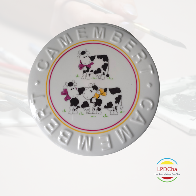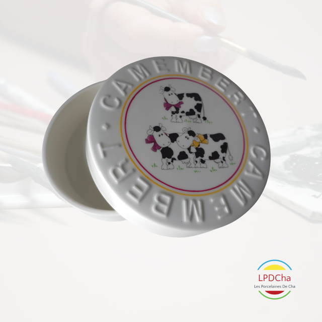 J19/16-25-12-12 - Boite à camembert en porcelaine blanche peinte à la main.