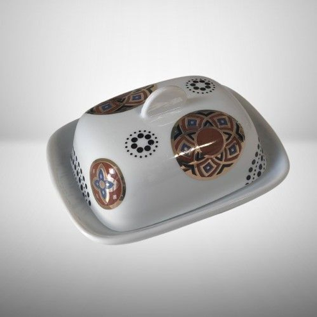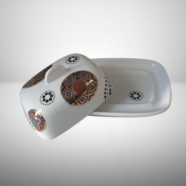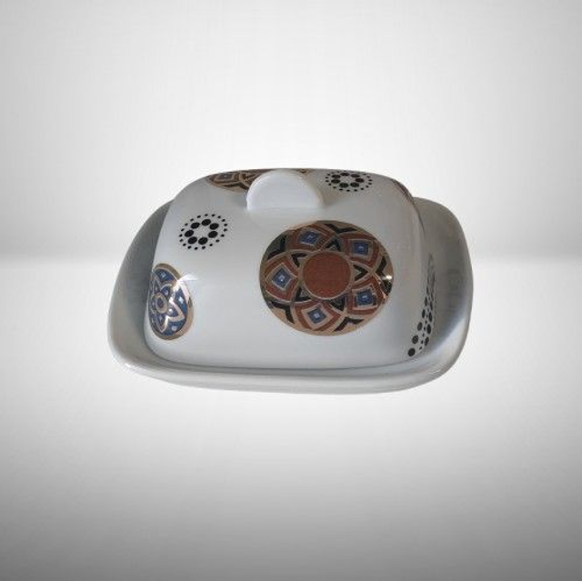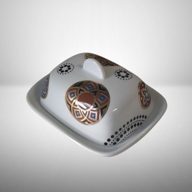 J22-24-11-02 - Beurrier en porcelaine blanche, décoré à la main.