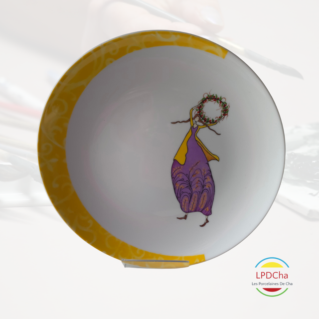 Une série d'assiettes où des demoiselles aux styles singuliers prennent vie, peintes à la main et sublimées par un tour d’assiette partiel texturé. Une rencontre délicate entre illustration artistique et modernité.