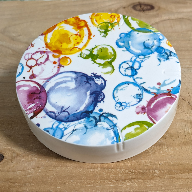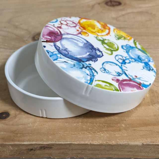 J19/13-24-02-05 - Boite à camembert en porcelaine blanche peinte à la main.